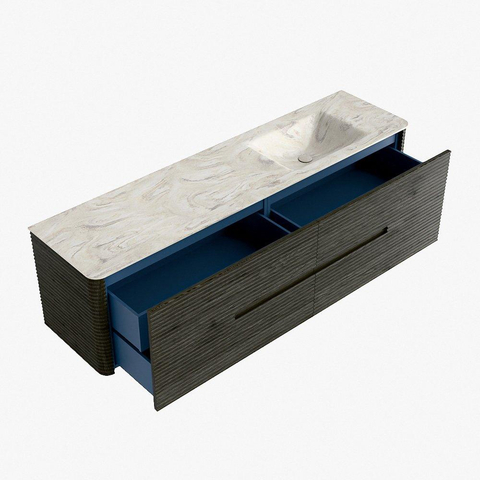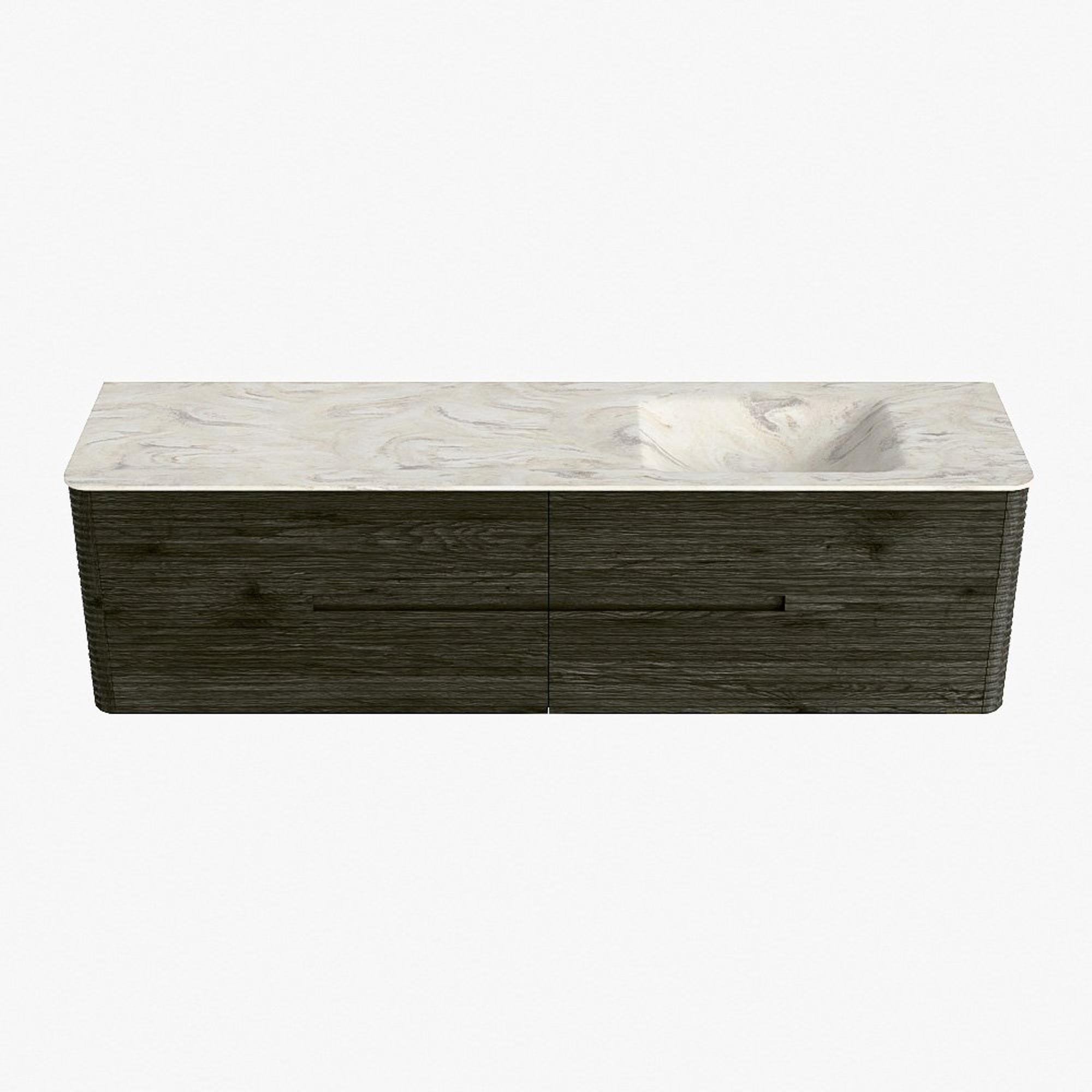 Mondiaz CIRO-DLUX Badkamermeubelset - 180x45x50cm - Solid surface wastafel Ostra - 1 wasbak Rechts - 1 kraangat - 4 lades - Shadow