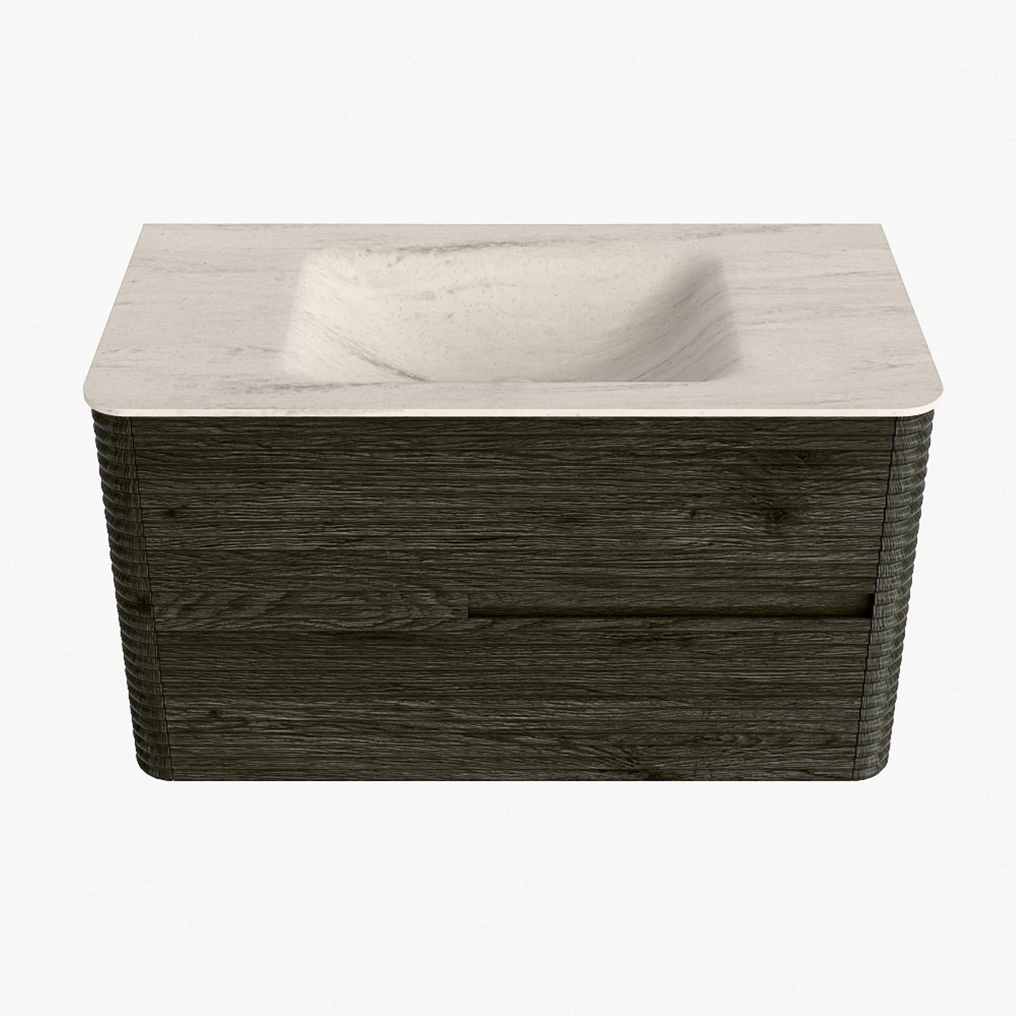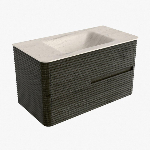 Mondiaz CIRO-DLUX Badkamermeubelset - 90x45x50cm - Solid surface wastafel Meli - 1 wasbak Midden - zonder kraangaten - 2 lades - Shadow