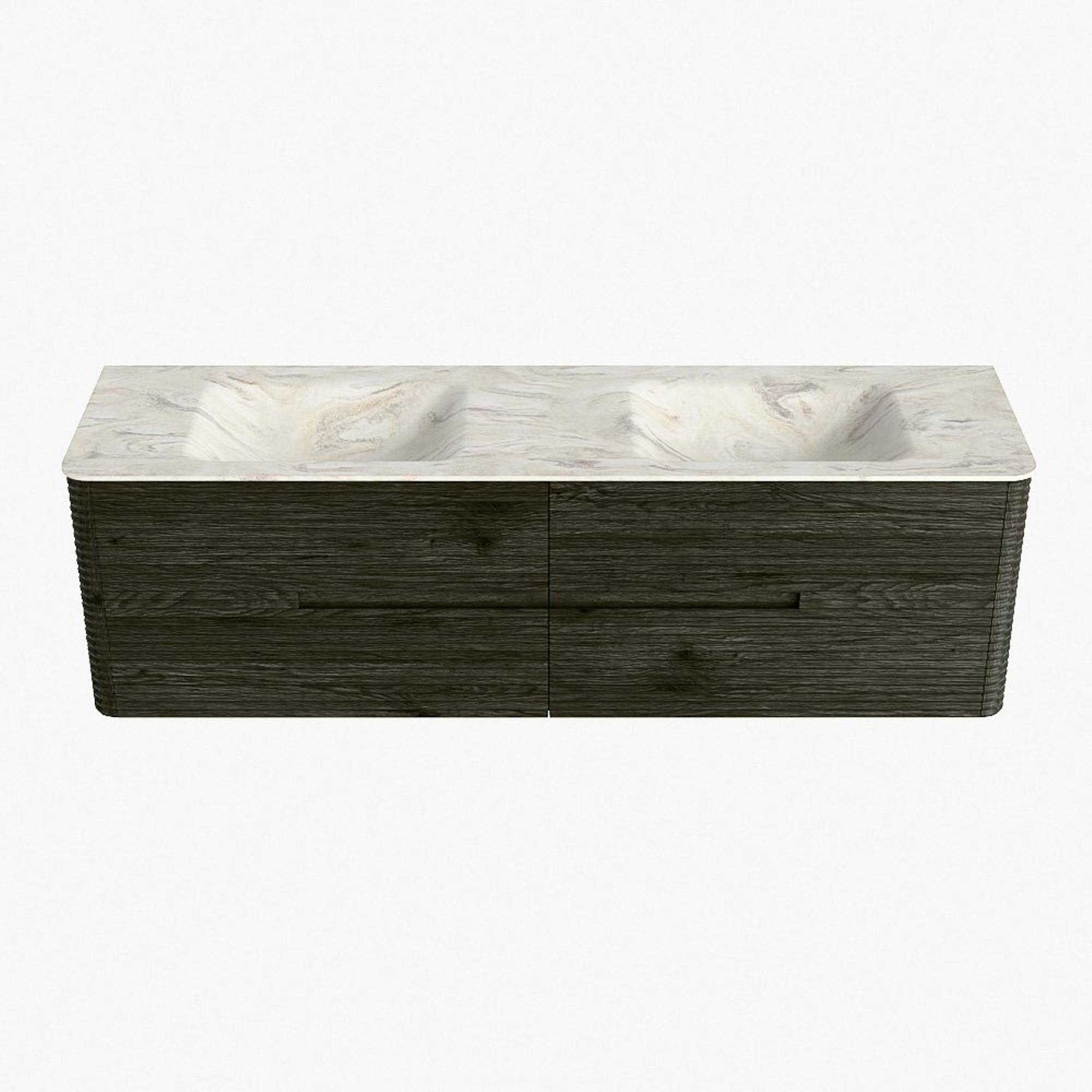 Mondiaz CIRO-DLUX Badkamermeubelset - 170x45x50cm - Solid surface wastafel Ostra - 2 wasbak Dubbel - 2 kraangaten - 4 lades - Shadow