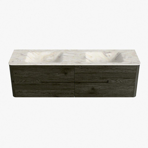 Mondiaz CIRO-DLUX Badkamermeubelset - 170x45x50cm - Solid surface wastafel Ostra - 2 wasbak Dubbel - zonder kraangaten - 4 lades - Shadow