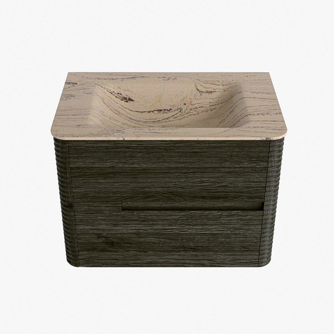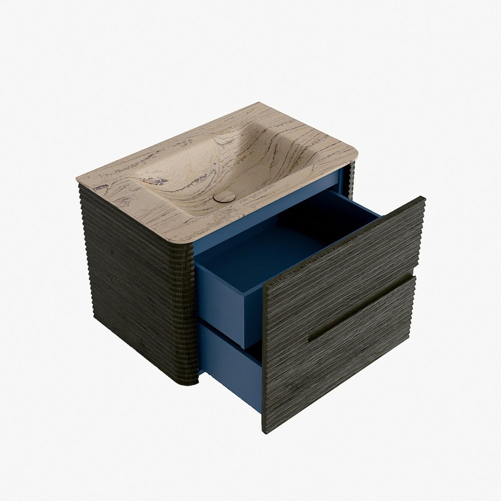 Mondiaz CIRO-DLUX Badkamermeubelset - 70x45x50cm - Solid surface wastafel Arena - 1 wasbak Midden - zonder kraangaten - 2 lades - Shadow