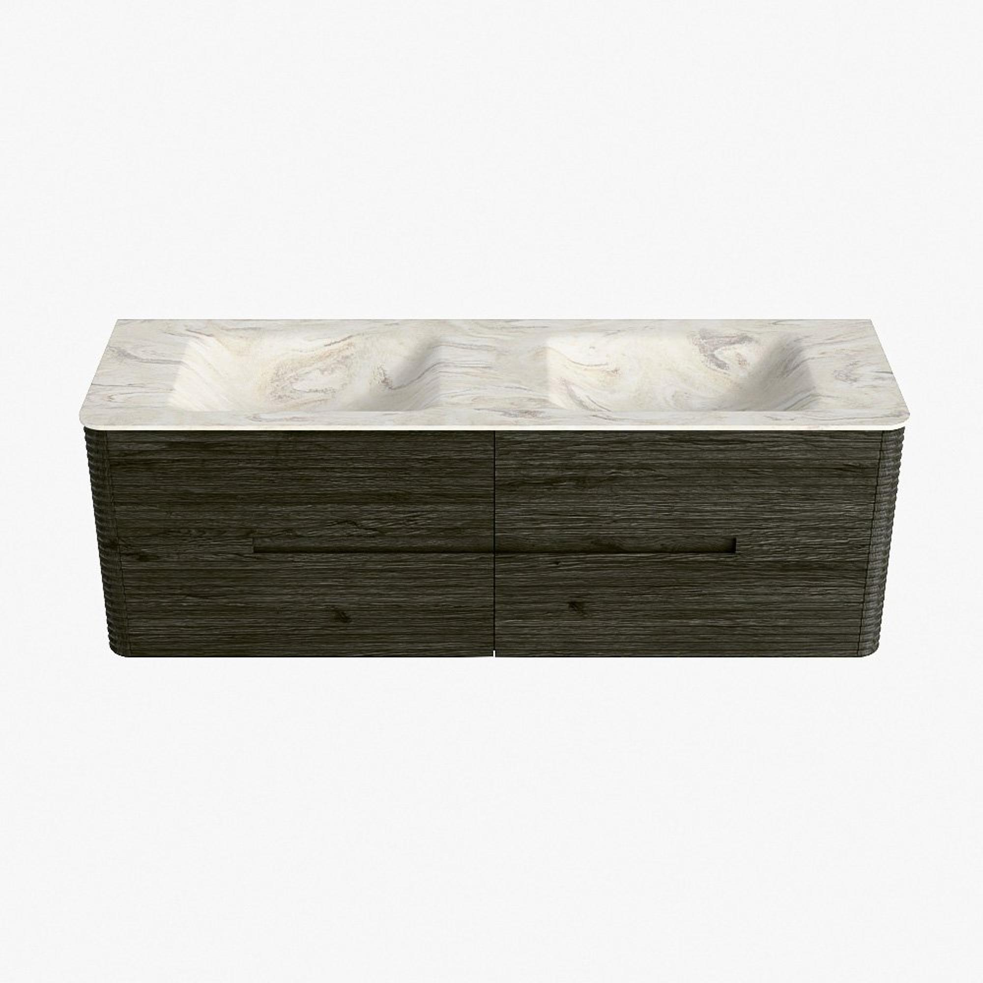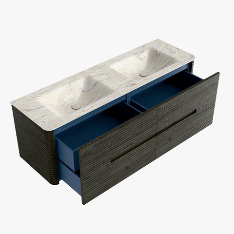 Mondiaz CIRO-DLUX Badkamermeubelset - 150x45x50cm - Solid surface wastafel Ostra - 2 wasbak Dubbel - 2 kraangaten - 4 lades - Shadow
