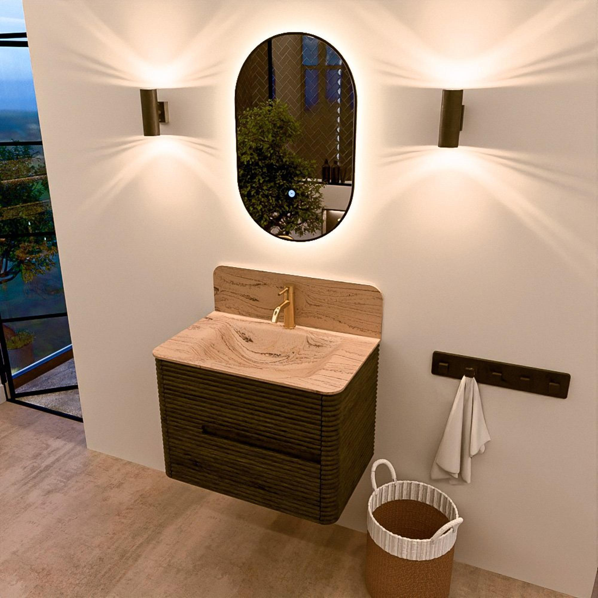 Mondiaz CIRO-DLUX Badkamermeubelset - 70x45x50cm - Solid surface wastafel Arena - 1 wasbak Midden - 1 kraangat - 2 lades - Shadow
