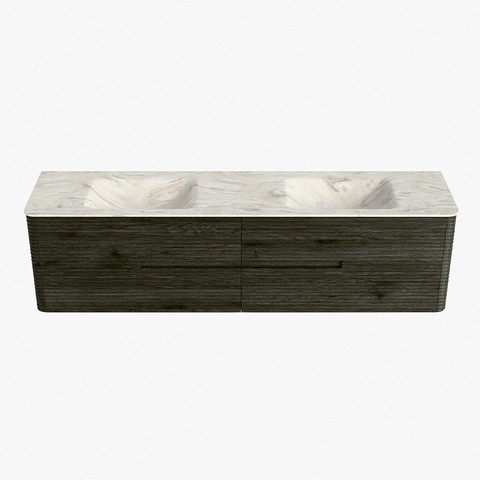 Mondiaz CIRO-DLUX Badkamermeubelset - 190x45x50cm - Solid surface wastafel Ostra - 2 wasbak Dubbel - zonder kraangaten - 4 lades - Shadow