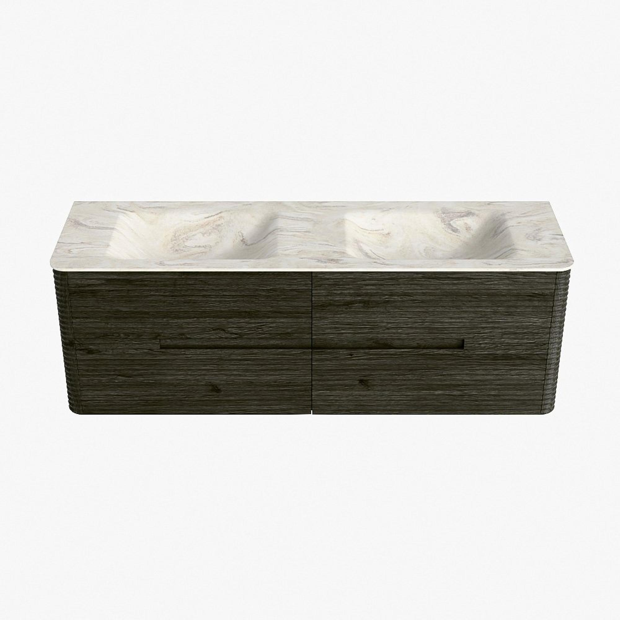 Mondiaz CIRO-DLUX Badkamermeubelset - 150x45x50cm - Solid surface wastafel Ostra - 2 wasbak Dubbel - zonder kraangaten - 4 lades - Shadow