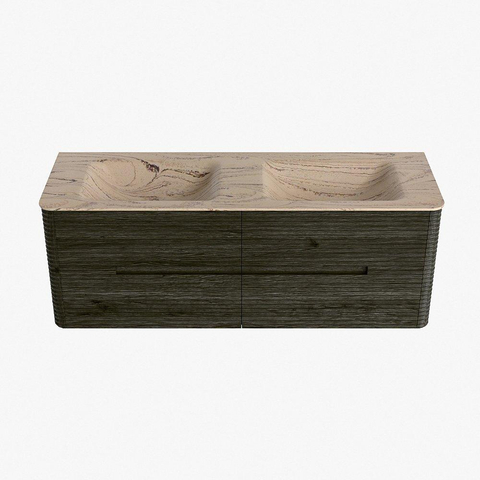 Mondiaz CIRO-DLUX Badkamermeubelset - 140x45x50cm - Solid surface wastafel Arena - 2 wasbak Dubbel - 2 kraangaten - 4 lades - Shadow
