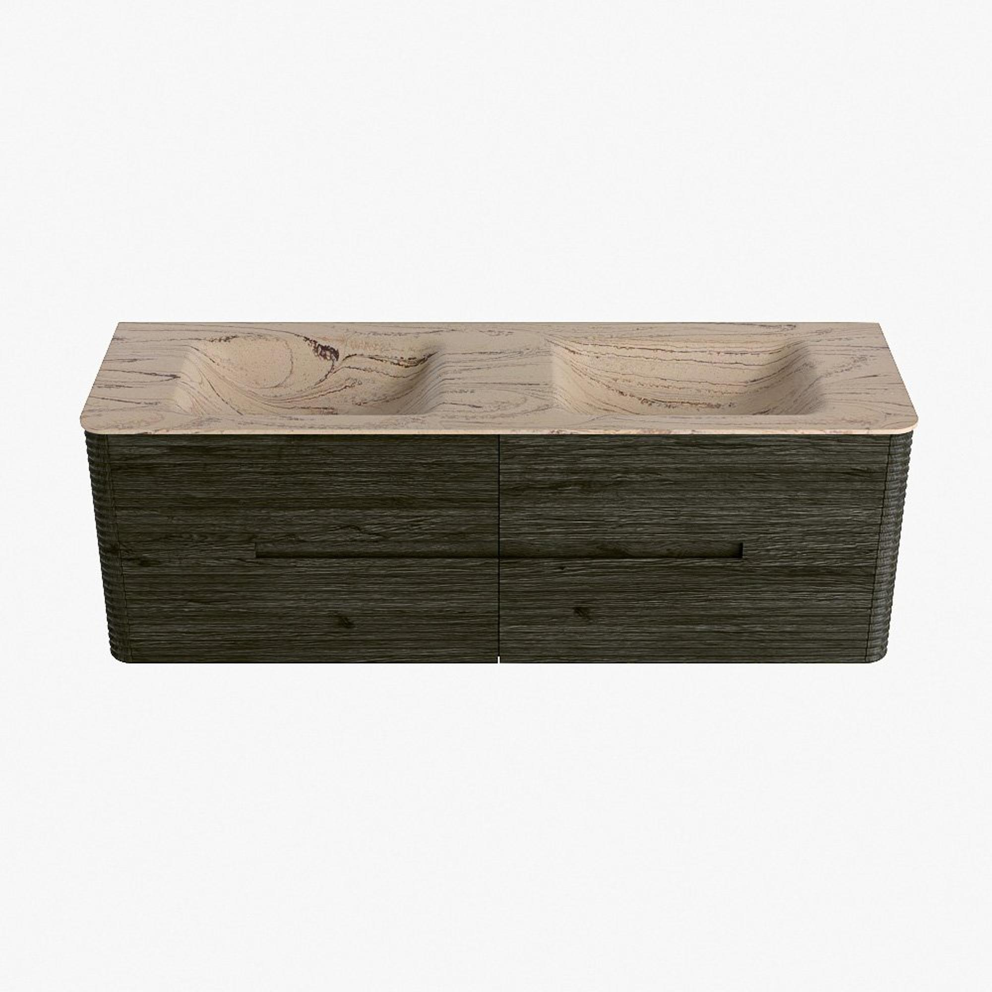 Mondiaz CIRO-DLUX Badkamermeubelset - 150x45x50cm - Solid surface wastafel Arena - 2 wasbak Dubbel - 2 kraangaten - 4 lades - Shadow