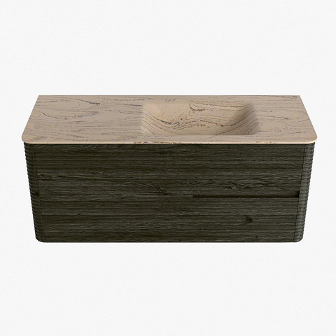 Mondiaz CIRO-DLUX Badkamermeubelset - 120x45x50cm - Solid surface wastafel Arena - 1 wasbak Rechts - zonder kraangaten - 2 lades - Shadow