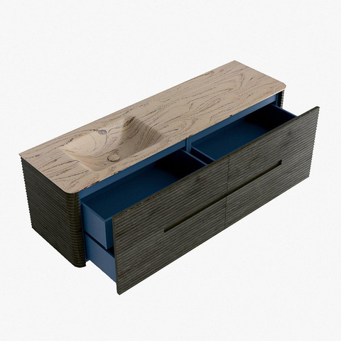 Functioneel gemak is een essentieel onderdeel van de CIRO-serie. Het meubel beschikt over een royale lade met extra binnen lade, ideaal voor het overzichtelijk opbergen van alle dagelijkse badkamerartikelen. Dankzij de geïntegreerde greep en het soft close-mechanisme blijft het front rustig, strak en elegant.