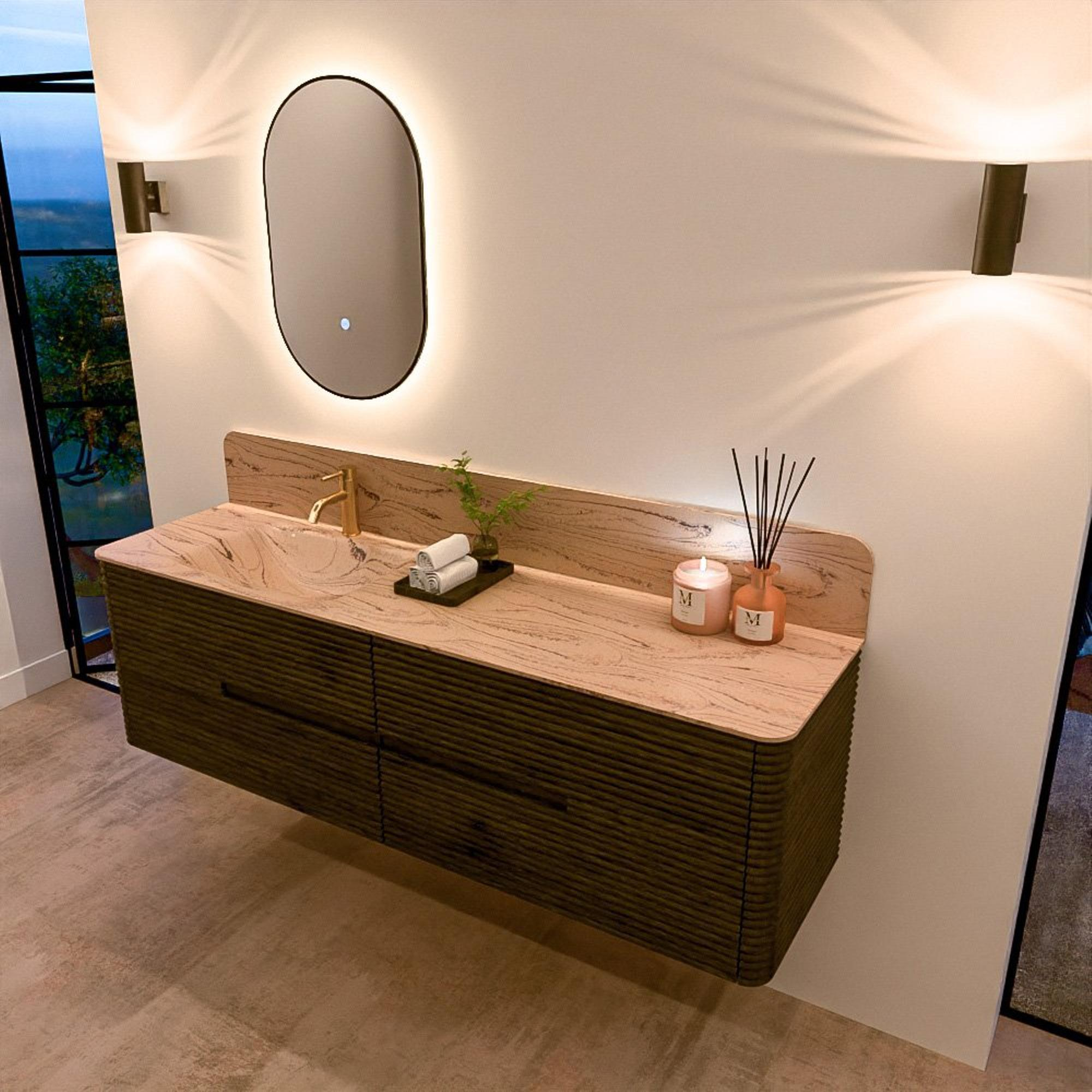 De wastafels van de CIRO-lijn worden vervaardigd uit hoogwaardig Solid Surface, een materiaal dat bekendstaat om zijn strakke uitstraling, hygiënische eigenschappen en uitstekende duurzaamheid. De wastafels zijn beschikbaar in 11 marmer- en travertin tinten, waarmee je het luxueuze karakter van natuursteen combineert met de voordelen van Solid Surface. De organische vorm van de kom versterkt het serene, sculpturale karakter van het ontwerp.