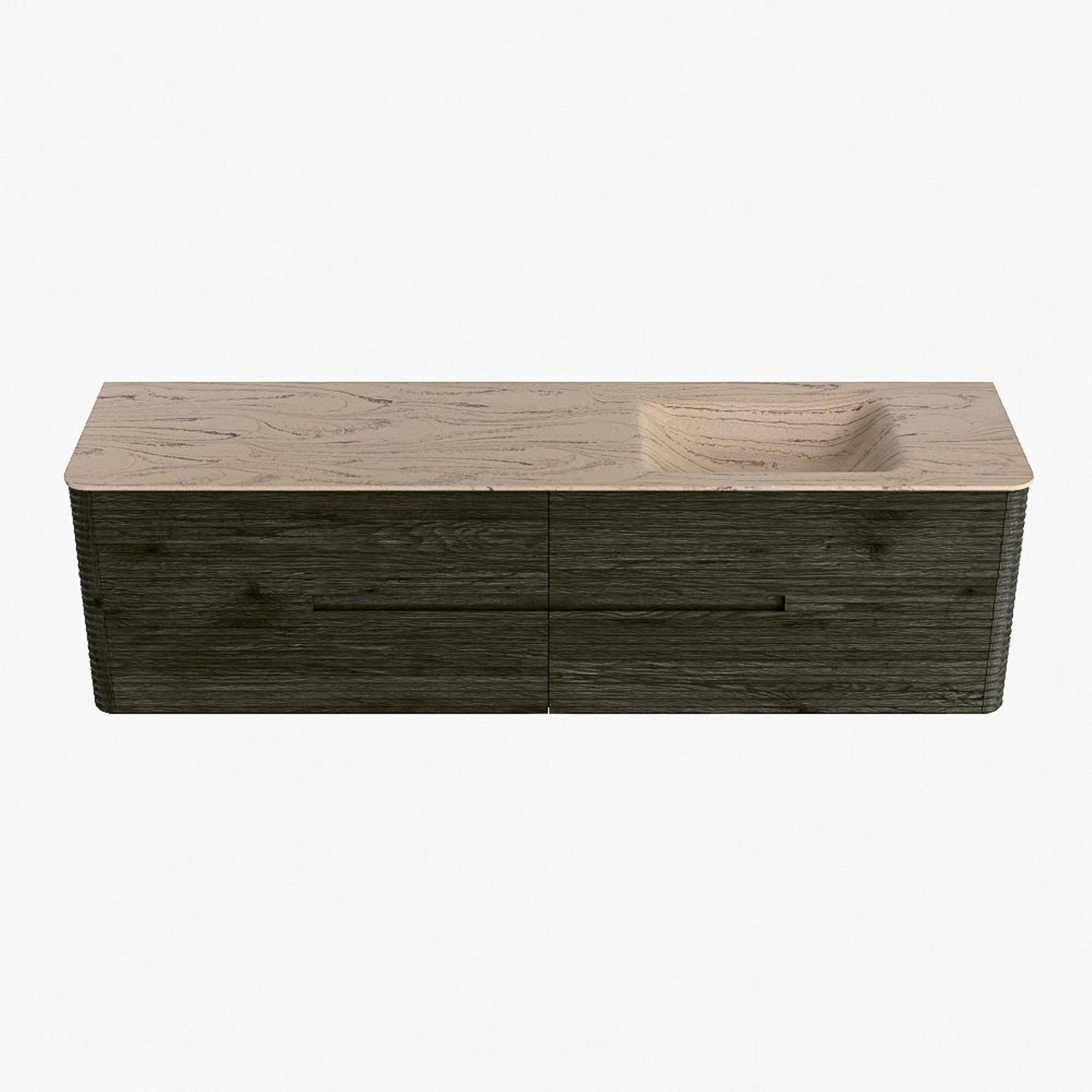 Mondiaz CIRO-DLUX Badkamermeubelset - 180x45x50cm - Solid surface wastafel Arena - 1 wasbak Rechts - zonder kraangaten - 4 lades - Shadow