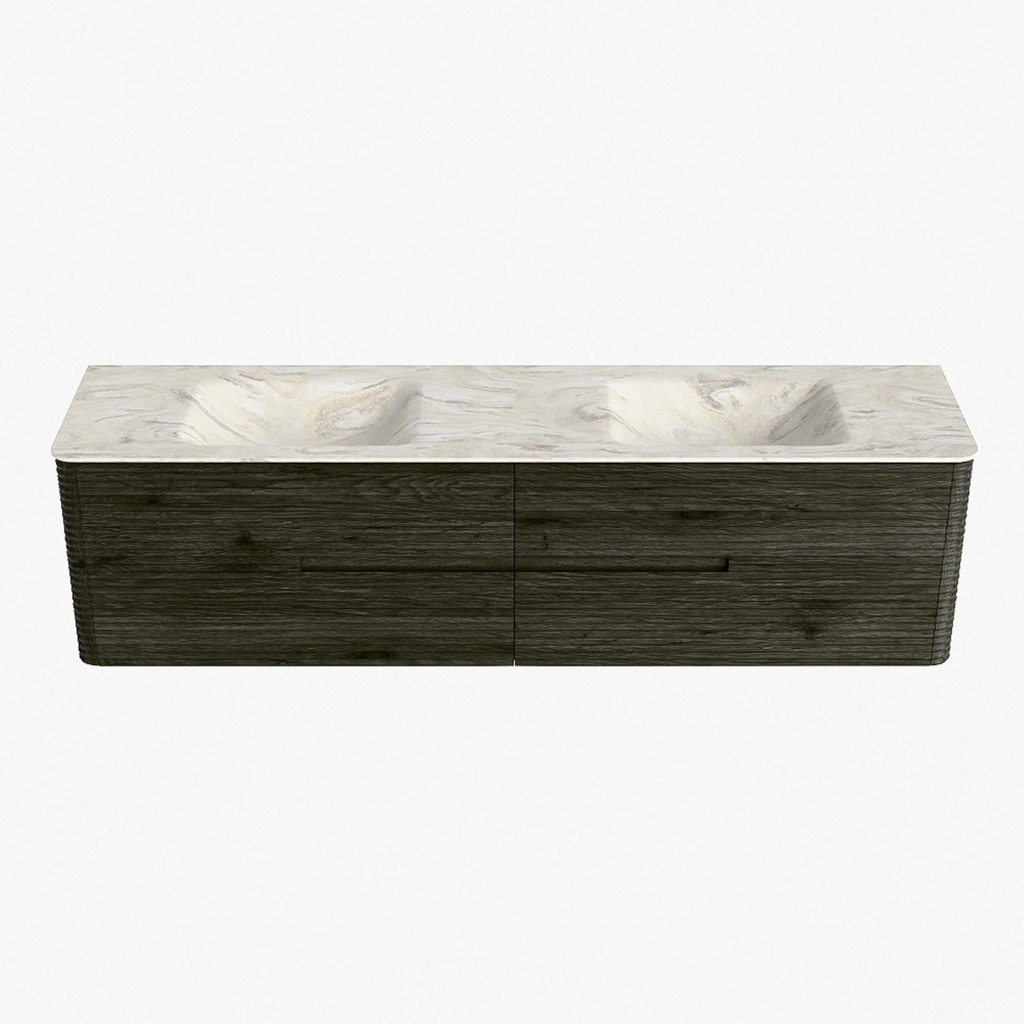 Mondiaz CIRO-DLUX Badkamermeubelset - 190x45x50cm - Solid surface wastafel Ostra - 2 wasbak Dubbel - 2 kraangaten - 4 lades - Shadow