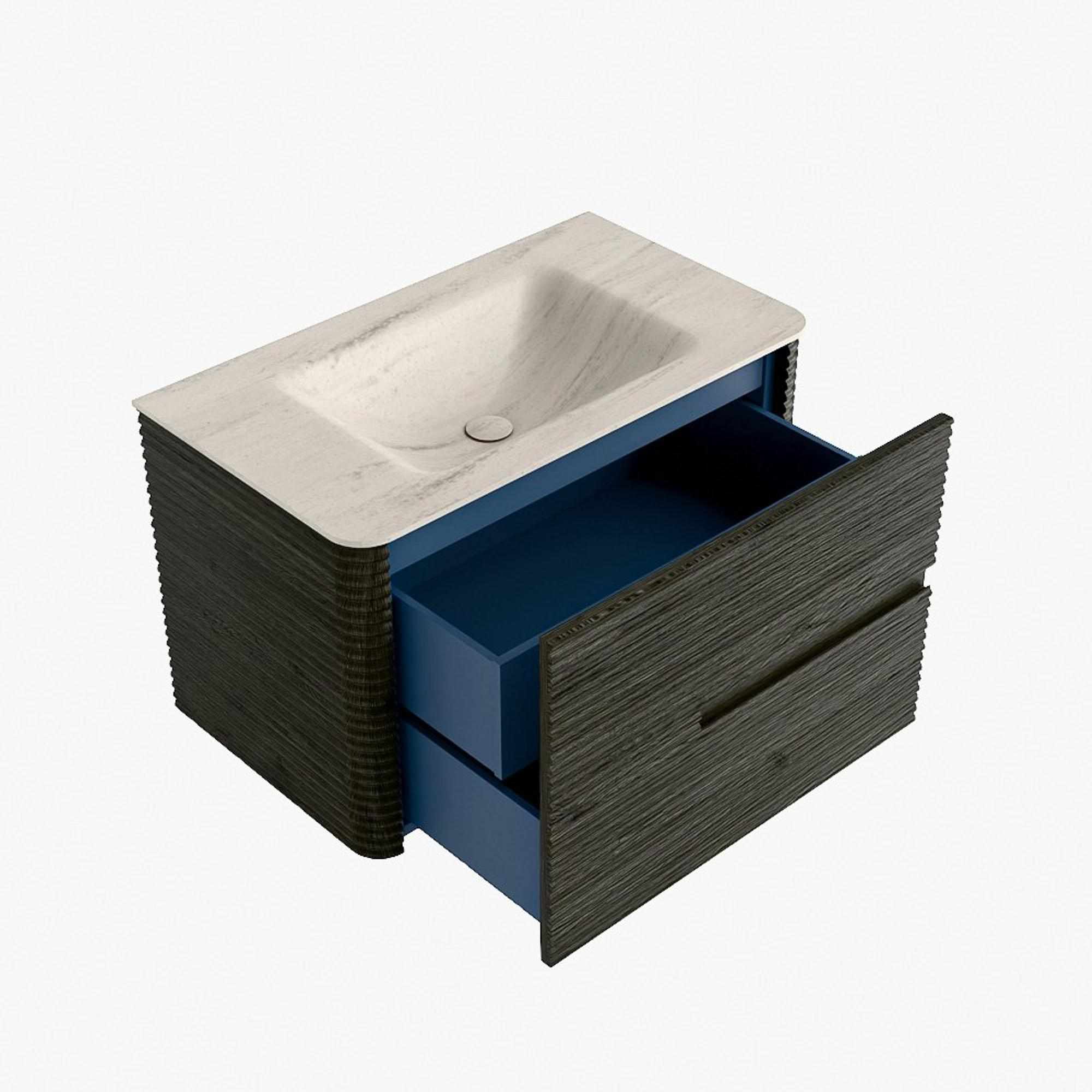 Functioneel gemak is een essentieel onderdeel van de CIRO-serie. Het meubel beschikt over een royale lade met extra binnen lade, ideaal voor het overzichtelijk opbergen van alle dagelijkse badkamerartikelen. Dankzij de geïntegreerde greep en het soft close-mechanisme blijft het front rustig, strak en elegant.