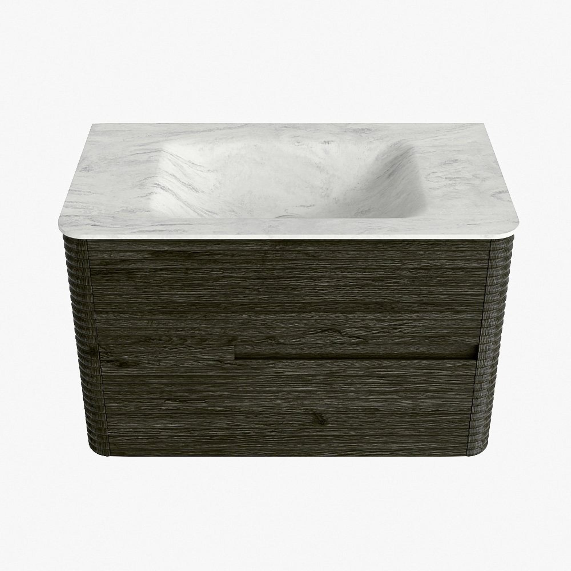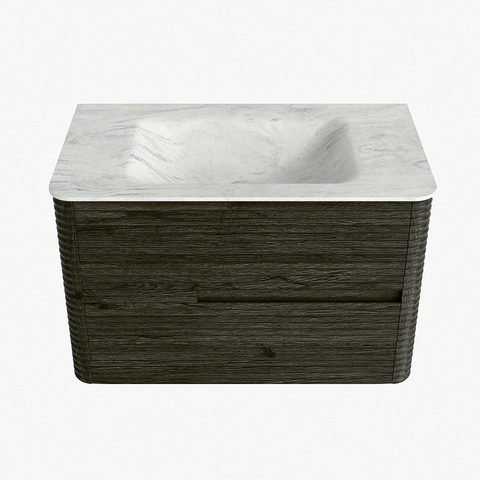 Mondiaz CIRO-DLUX Badkamermeubelset - 80x45x50cm - Solid surface wastafel Opalo - 1 wasbak Midden - 1 kraangat - 2 lades - Shadow