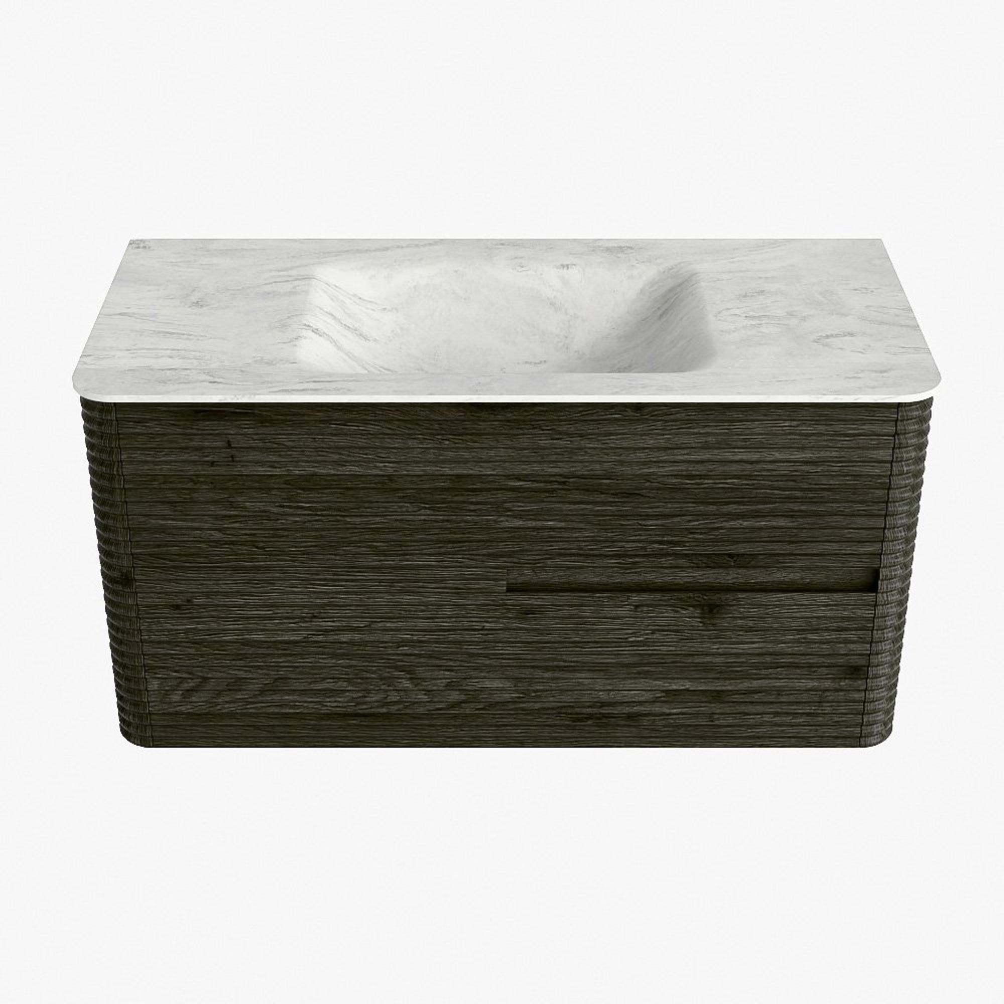 Mondiaz CIRO-DLUX Badkamermeubelset - 100x45x50cm - Solid surface wastafel Opalo - 1 wasbak Midden - zonder kraangaten - 2 lades - Shadow