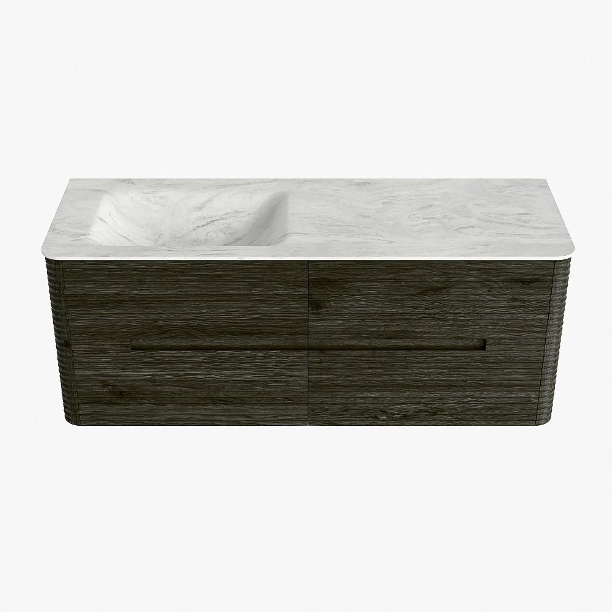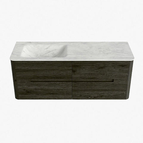 Mondiaz CIRO-DLUX Badkamermeubelset - 130x45x50cm - Solid surface wastafel Opalo - 1 wasbak Links - 1 kraangat - 4 lades - Shadow