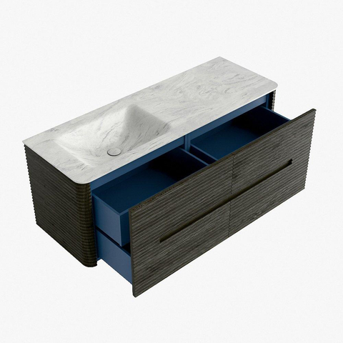 Functioneel gemak is een essentieel onderdeel van de CIRO-serie. Het meubel beschikt over een royale lade met extra binnen lade, ideaal voor het overzichtelijk opbergen van alle dagelijkse badkamerartikelen. Dankzij de geïntegreerde greep en het soft close-mechanisme blijft het front rustig, strak en elegant.