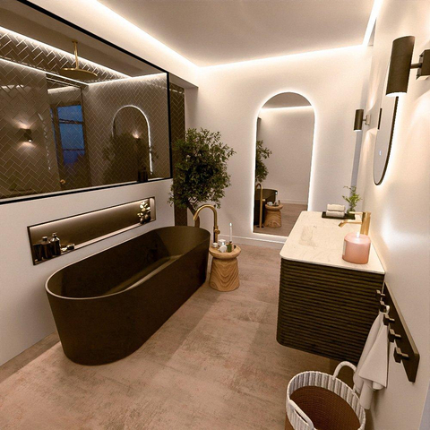 De wastafels van de CIRO-lijn worden vervaardigd uit hoogwaardig Solid Surface, een materiaal dat bekendstaat om zijn strakke uitstraling, hygiënische eigenschappen en uitstekende duurzaamheid. De wastafels zijn beschikbaar in 11 marmer- en travertin tinten, waarmee je het luxueuze karakter van natuursteen combineert met de voordelen van Solid Surface. De organische vorm van de kom versterkt het serene, sculpturale karakter van het ontwerp.