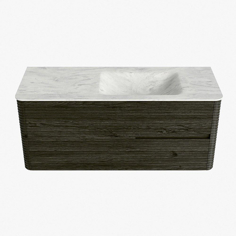 Mondiaz CIRO-DLUX Badkamermeubelset - 120x45x50cm - Solid surface wastafel Opalo - 1 wasbak Rechts - 1 kraangat - 2 lades - Shadow