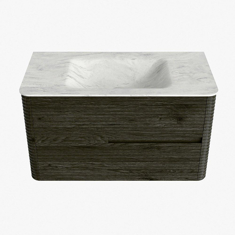 Mondiaz CIRO-DLUX Badkamermeubelset - 90x45x50cm - Solid surface wastafel Opalo - 1 wasbak Midden - 1 kraangat - 2 lades - Shadow
