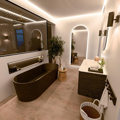 De wastafels van de CIRO-lijn worden vervaardigd uit hoogwaardig Solid Surface, een materiaal dat bekendstaat om zijn strakke uitstraling, hygiënische eigenschappen en uitstekende duurzaamheid. De wastafels zijn beschikbaar in 11 marmer- en travertin tinten, waarmee je het luxueuze karakter van natuursteen combineert met de voordelen van Solid Surface. De organische vorm van de kom versterkt het serene, sculpturale karakter van het ontwerp.