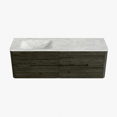 Mondiaz CIRO-DLUX Badkamermeubelset - 150x45x50cm - Solid surface wastafel Opalo - 1 wasbak Links - zonder kraangaten - 4 lades - Shadow