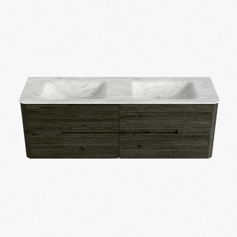 Mondiaz CIRO-DLUX Badkamermeubelset - 150x45x50cm - Solid surface wastafel Opalo - 2 wasbak Dubbel - zonder kraangaten - 4 lades - Shadow