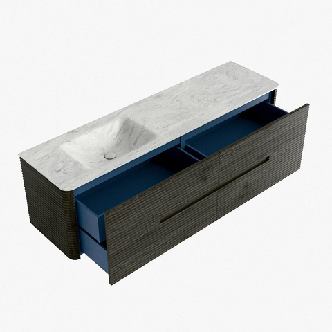 Functioneel gemak is een essentieel onderdeel van de CIRO-serie. Het meubel beschikt over een royale lade met extra binnen lade, ideaal voor het overzichtelijk opbergen van alle dagelijkse badkamerartikelen. Dankzij de geïntegreerde greep en het soft close-mechanisme blijft het front rustig, strak en elegant.