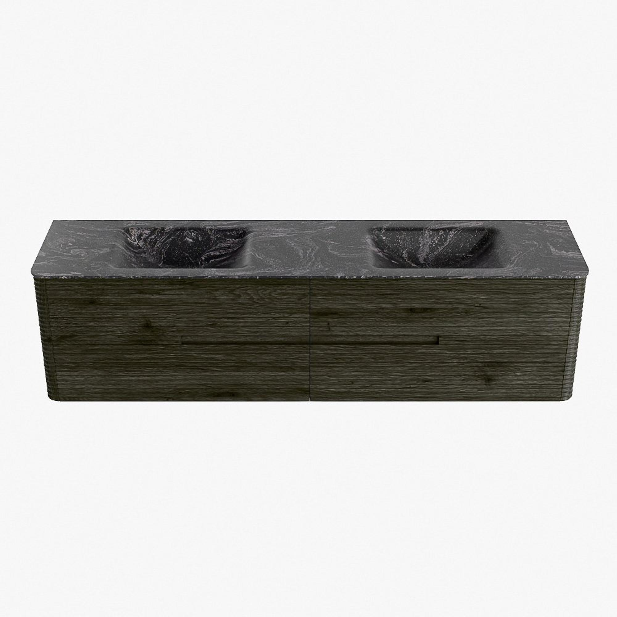 Mondiaz CIRO-DLUX Badkamermeubelset - 190x45x50cm - Solid surface wastafel Lava - 2 wasbak Dubbel - zonder kraangaten - 4 lades - Shadow