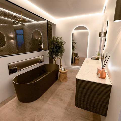 De wastafels van de CIRO-lijn worden vervaardigd uit hoogwaardig Solid Surface, een materiaal dat bekendstaat om zijn strakke uitstraling, hygiënische eigenschappen en uitstekende duurzaamheid. De wastafels zijn beschikbaar in 11 marmer- en travertin tinten, waarmee je het luxueuze karakter van natuursteen combineert met de voordelen van Solid Surface. De organische vorm van de kom versterkt het serene, sculpturale karakter van het ontwerp.