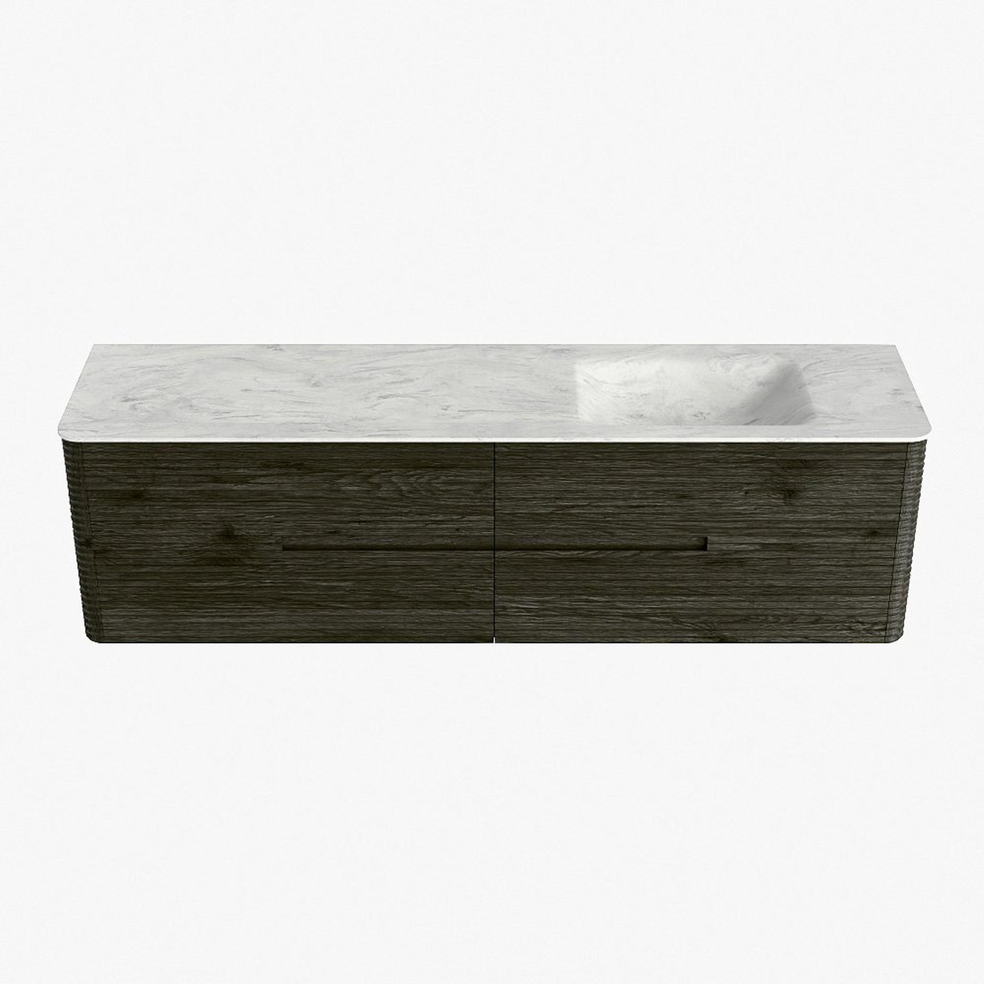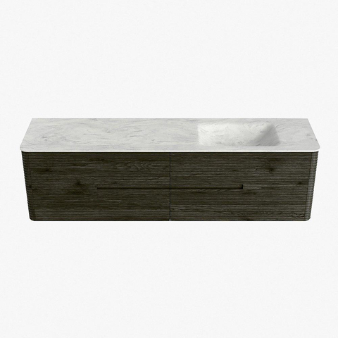 Mondiaz CIRO-DLUX Badkamermeubelset - 180x45x50cm - Solid surface wastafel Opalo - 1 wasbak Rechts - zonder kraangaten - 4 lades - Shadow