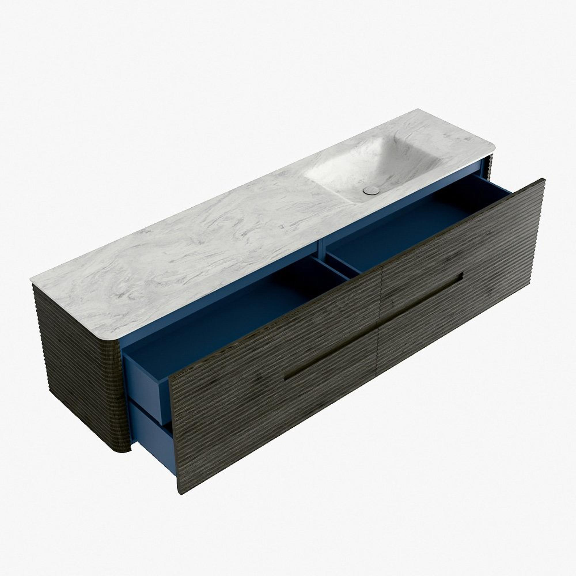 Functioneel gemak is een essentieel onderdeel van de CIRO-serie. Het meubel beschikt over een royale lade met extra binnen lade, ideaal voor het overzichtelijk opbergen van alle dagelijkse badkamerartikelen. Dankzij de geïntegreerde greep en het soft close-mechanisme blijft het front rustig, strak en elegant.