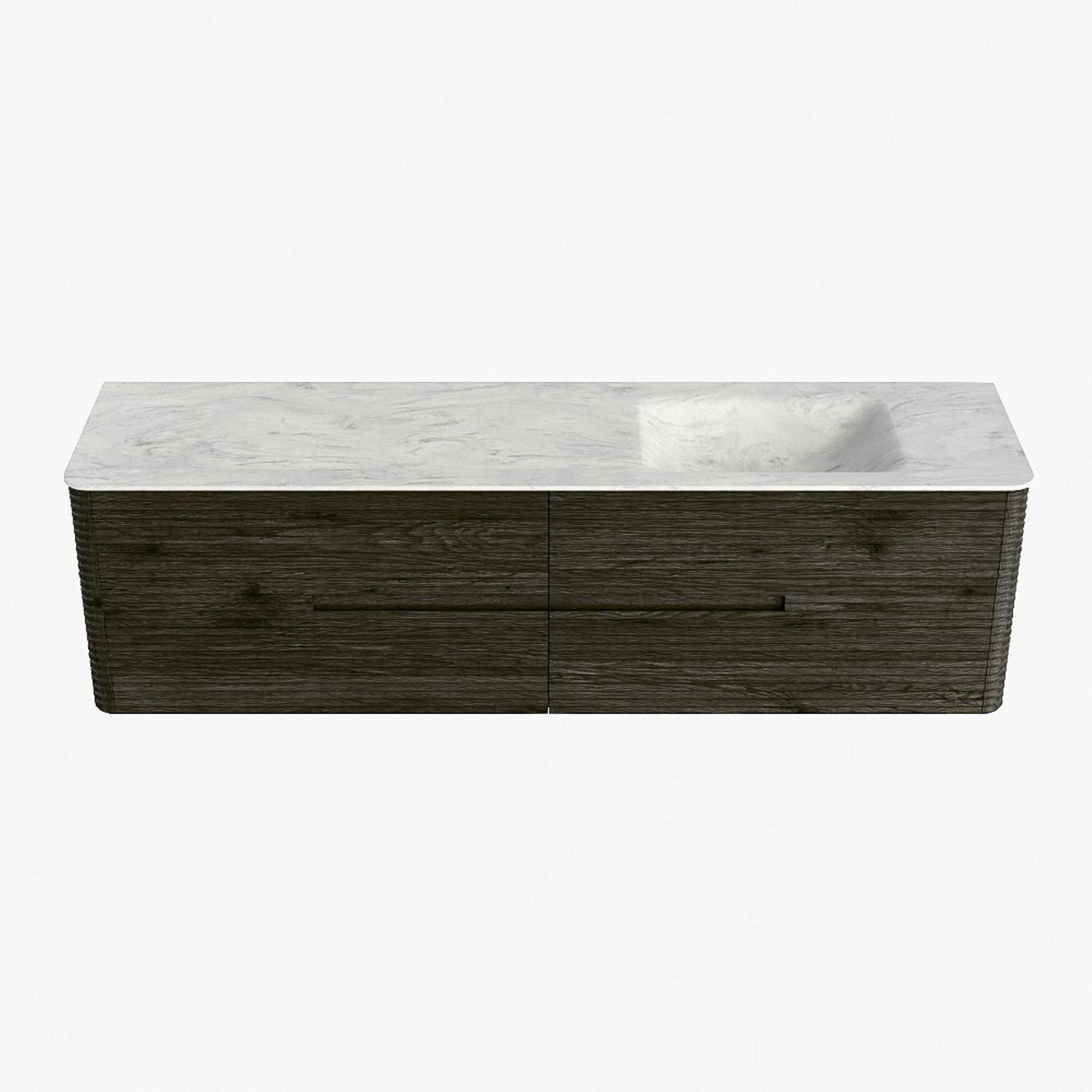 Mondiaz CIRO-DLUX Badkamermeubelset - 180x45x50cm - Solid surface wastafel Opalo - 1 wasbak Rechts - 1 kraangat - 4 lades - Shadow