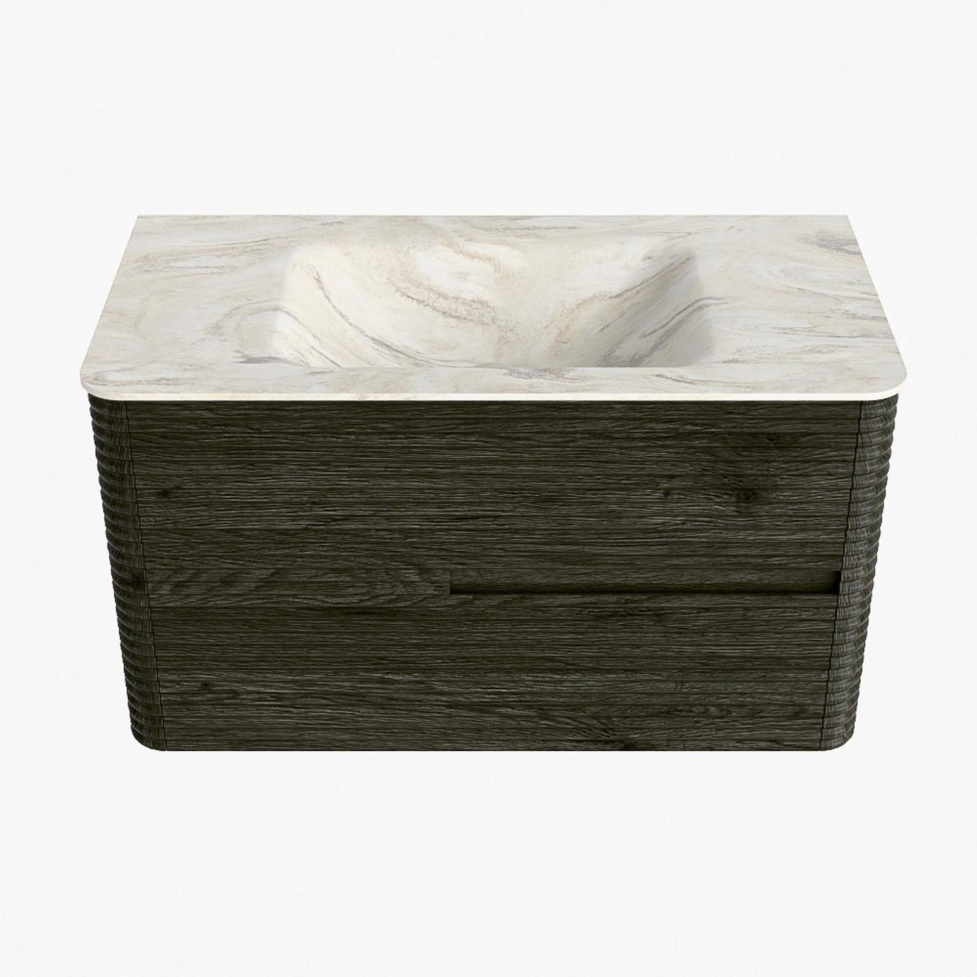 Mondiaz CIRO-DLUX Badkamermeubelset - 90x45x50cm - Solid surface wastafel Ostra - 1 wasbak Midden - zonder kraangaten - 2 lades - Shadow