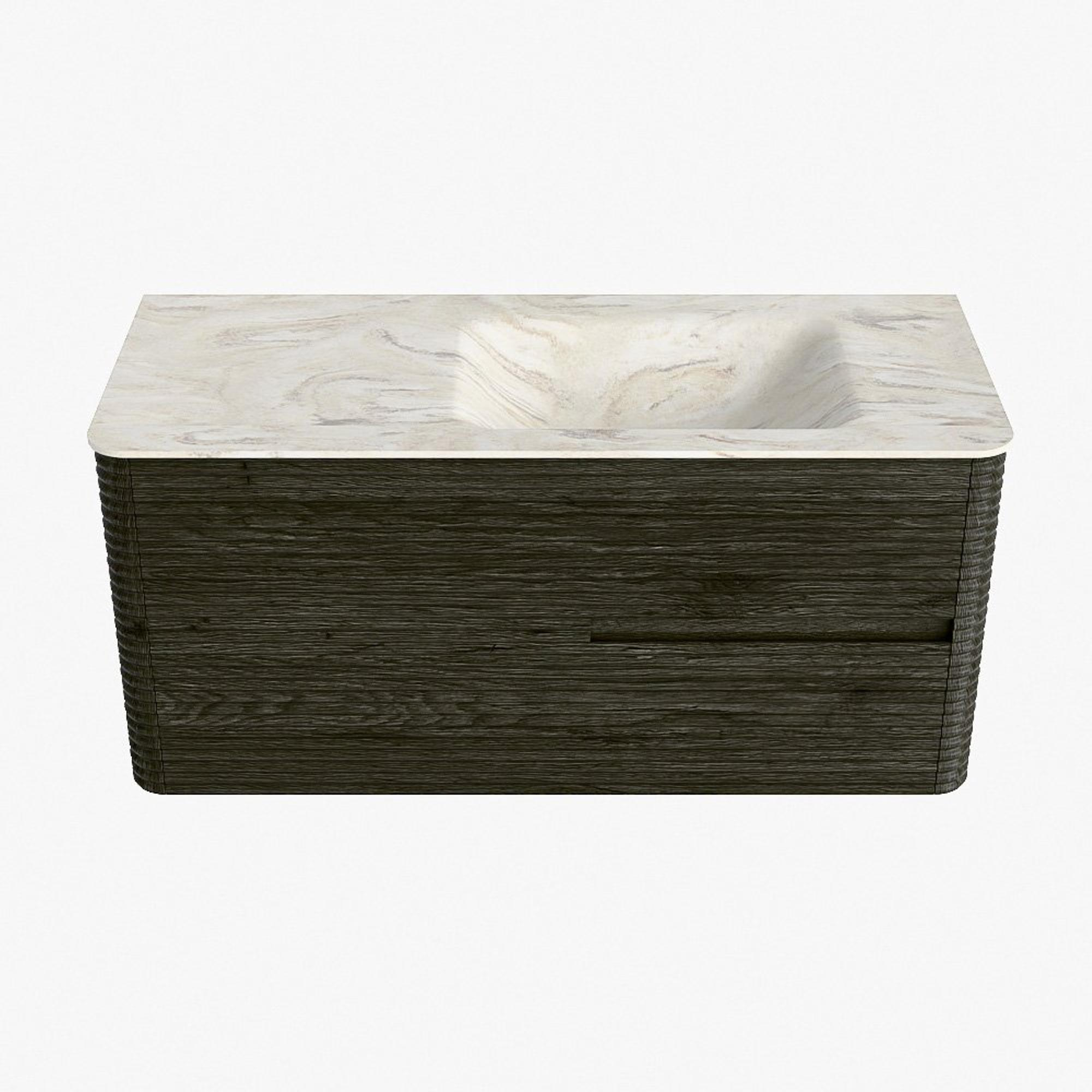De wastafels van de CIRO-lijn worden vervaardigd uit hoogwaardig Solid Surface, een materiaal dat bekendstaat om zijn strakke uitstraling, hygiënische eigenschappen en uitstekende duurzaamheid. De wastafels zijn beschikbaar in 11 marmer- en travertin tinten, waarmee je het luxueuze karakter van natuursteen combineert met de voordelen van Solid Surface. De organische vorm van de kom versterkt het serene, sculpturale karakter van het ontwerp.