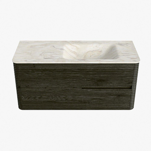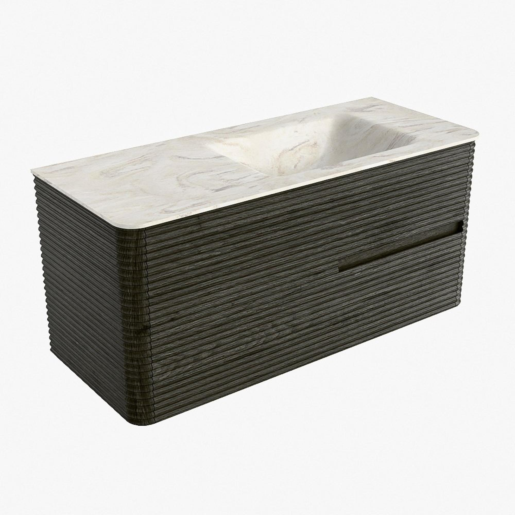 Mondiaz CIRO-DLUX Badkamermeubelset - 110x45x50cm - Solid surface wastafel Ostra - 1 wasbak Rechts - zonder kraangaten - 2 lades - Shadow
