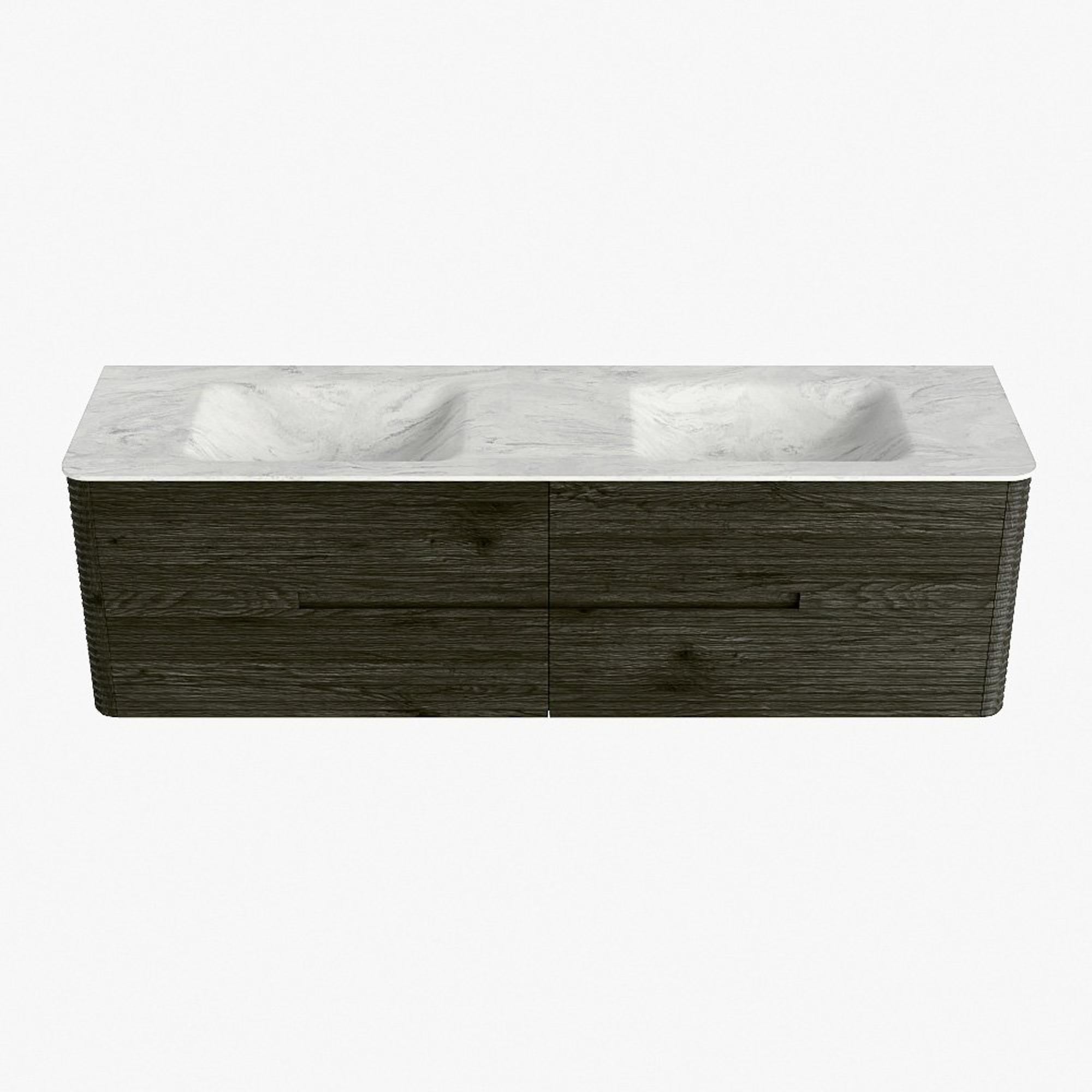 Mondiaz CIRO-DLUX Badkamermeubelset - 170x45x50cm - Solid surface wastafel Opalo - 2 wasbak Dubbel - zonder kraangaten - 4 lades - Shadow