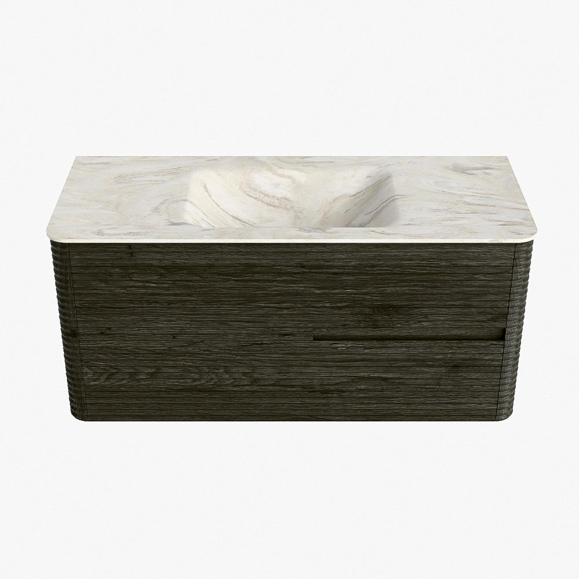 Mondiaz CIRO-DLUX Badkamermeubelset - 110x45x50cm - Solid surface wastafel Ostra - 1 wasbak Midden - zonder kraangaten - 2 lades - Shadow