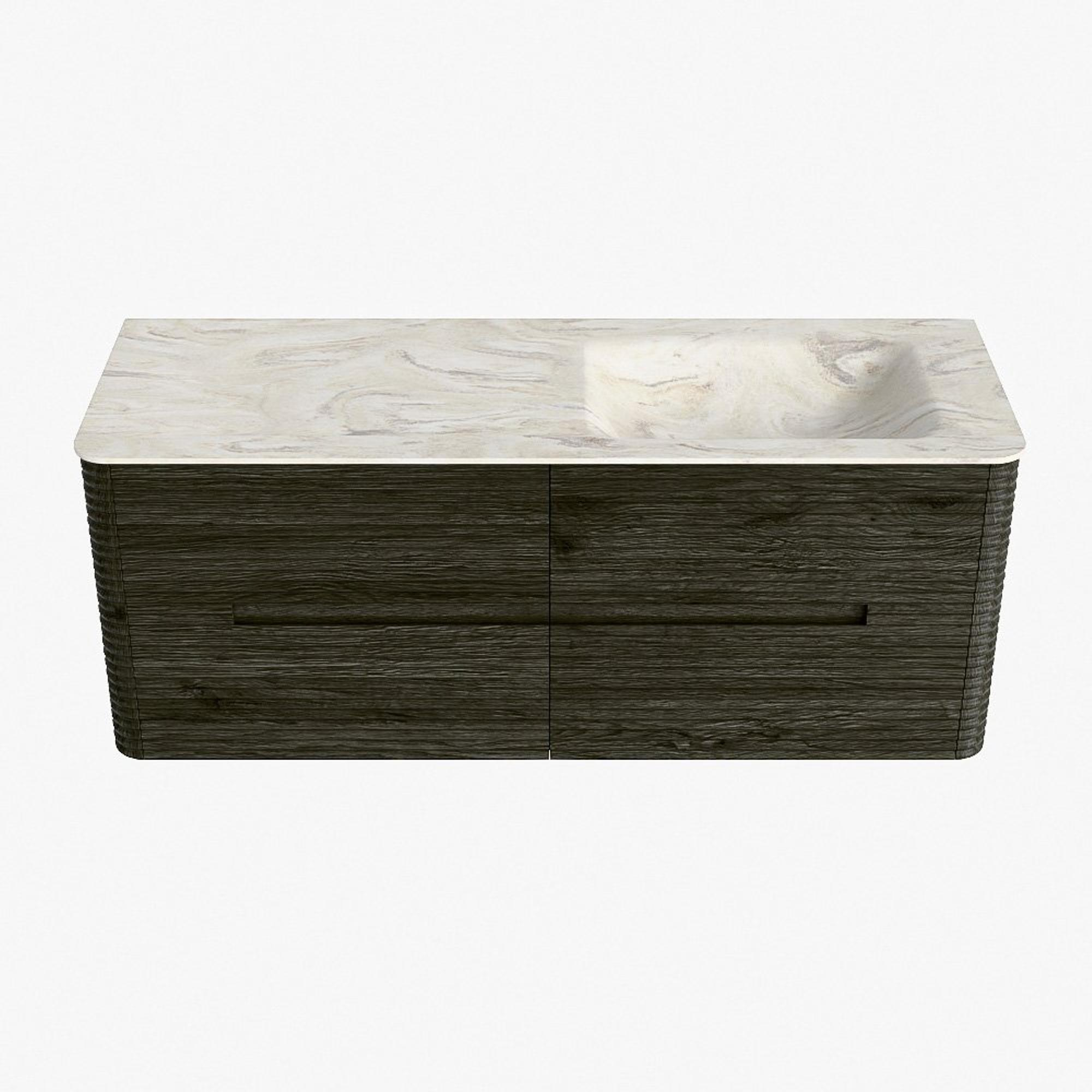 Mondiaz CIRO-DLUX Badkamermeubelset - 130x45x50cm - Solid surface wastafel Ostra - 1 wasbak Rechts - 1 kraangat - 4 lades - Shadow