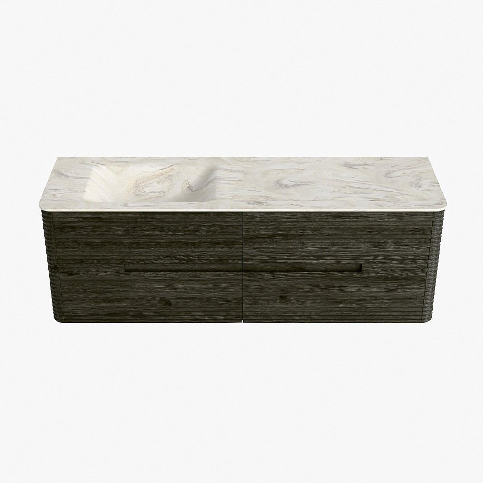 Mondiaz CIRO-DLUX Badkamermeubelset - 150x45x50cm - Solid surface wastafel Ostra - 1 wasbak Links - 1 kraangat - 4 lades - Shadow