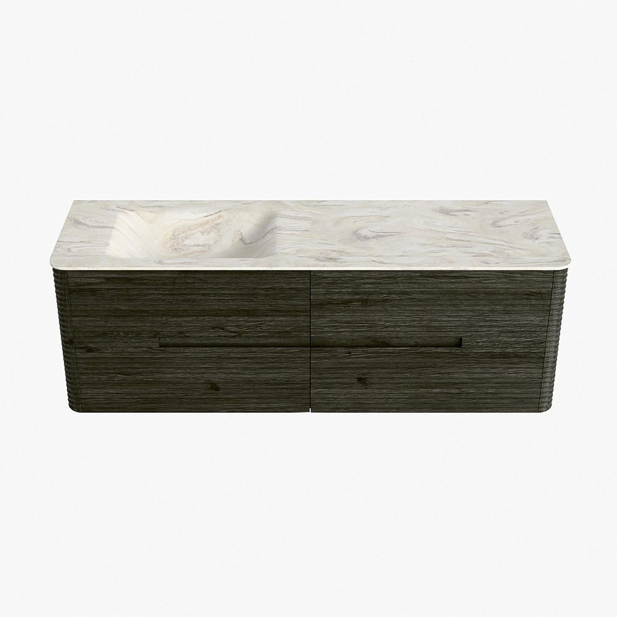 Mondiaz CIRO-DLUX Badkamermeubelset - 150x45x50cm - Solid surface wastafel Ostra - 1 wasbak Links - zonder kraangaten - 4 lades - Shadow