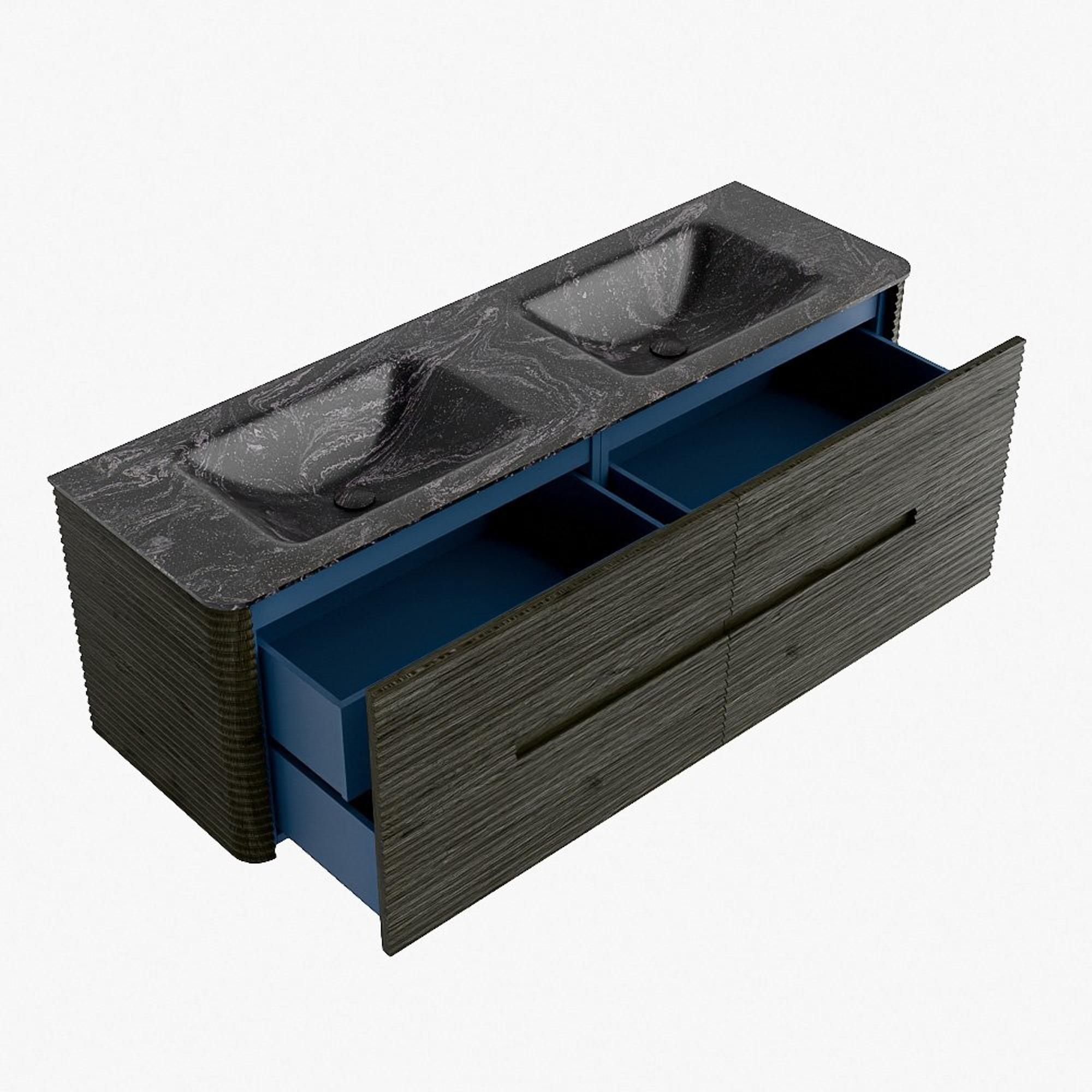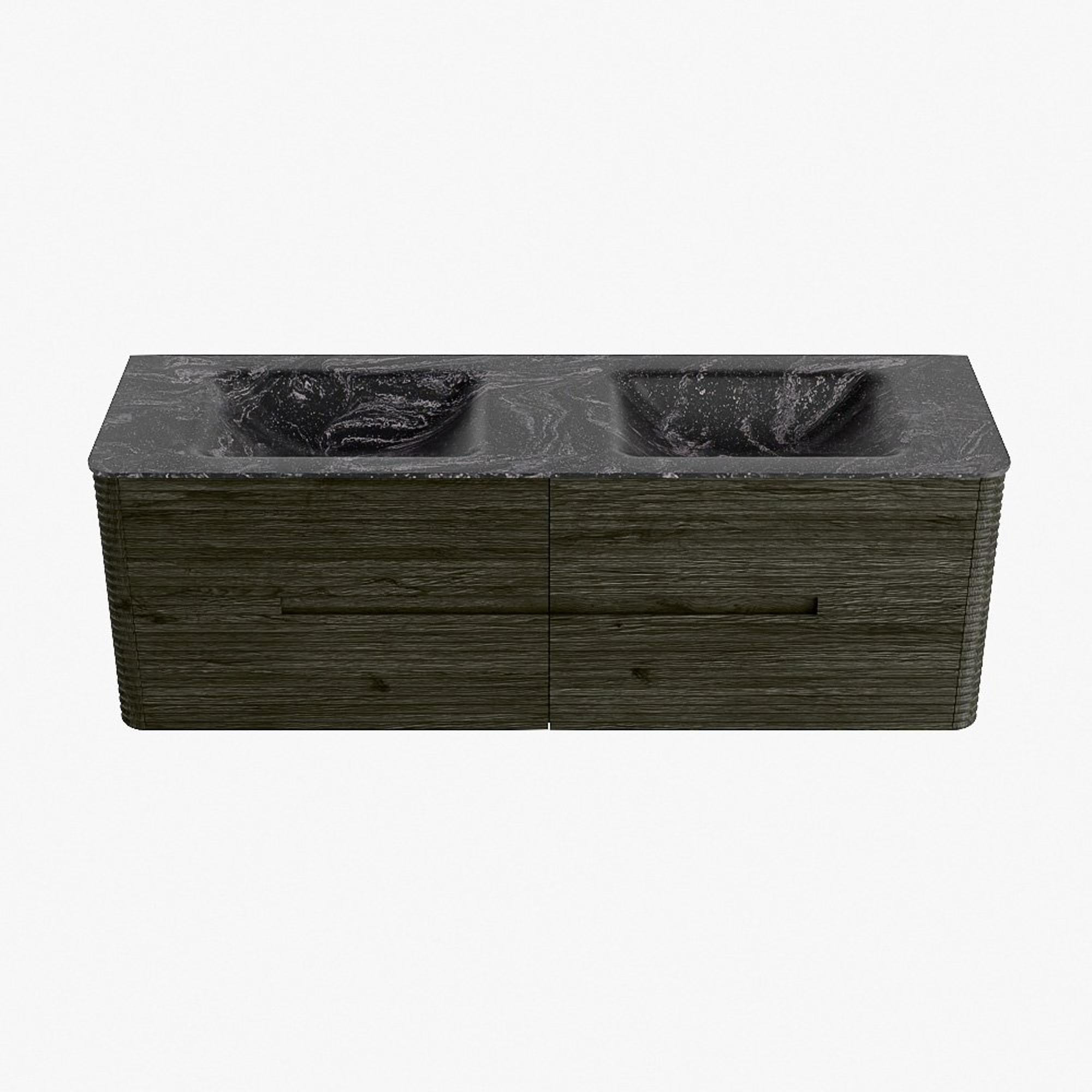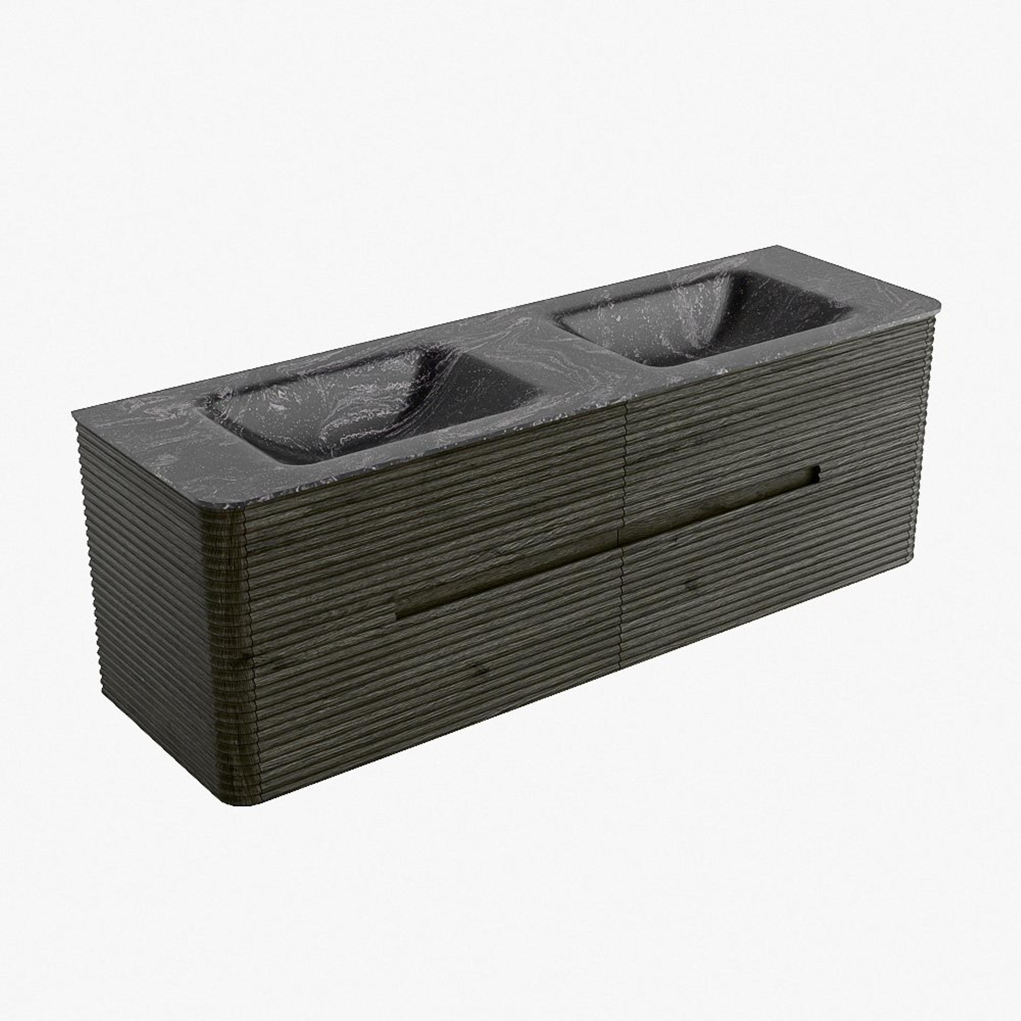 Mondiaz CIRO-DLUX Badkamermeubelset - 150x45x50cm - Solid surface wastafel Lava - 2 wasbak Dubbel - zonder kraangaten - 4 lades - Shadow