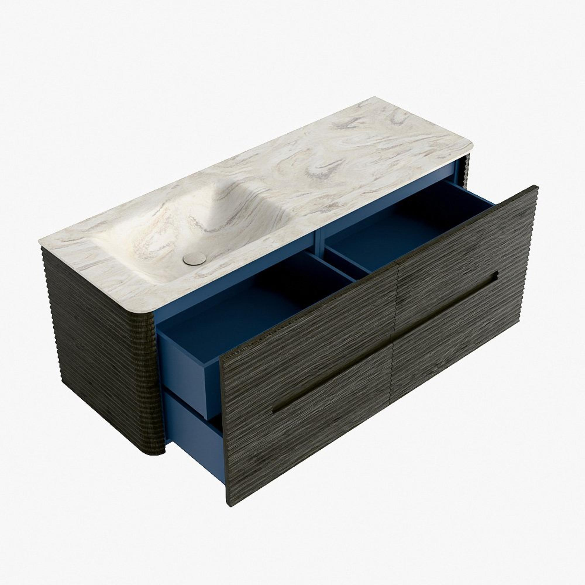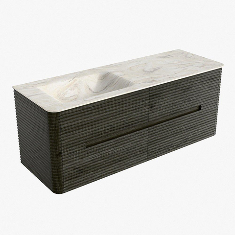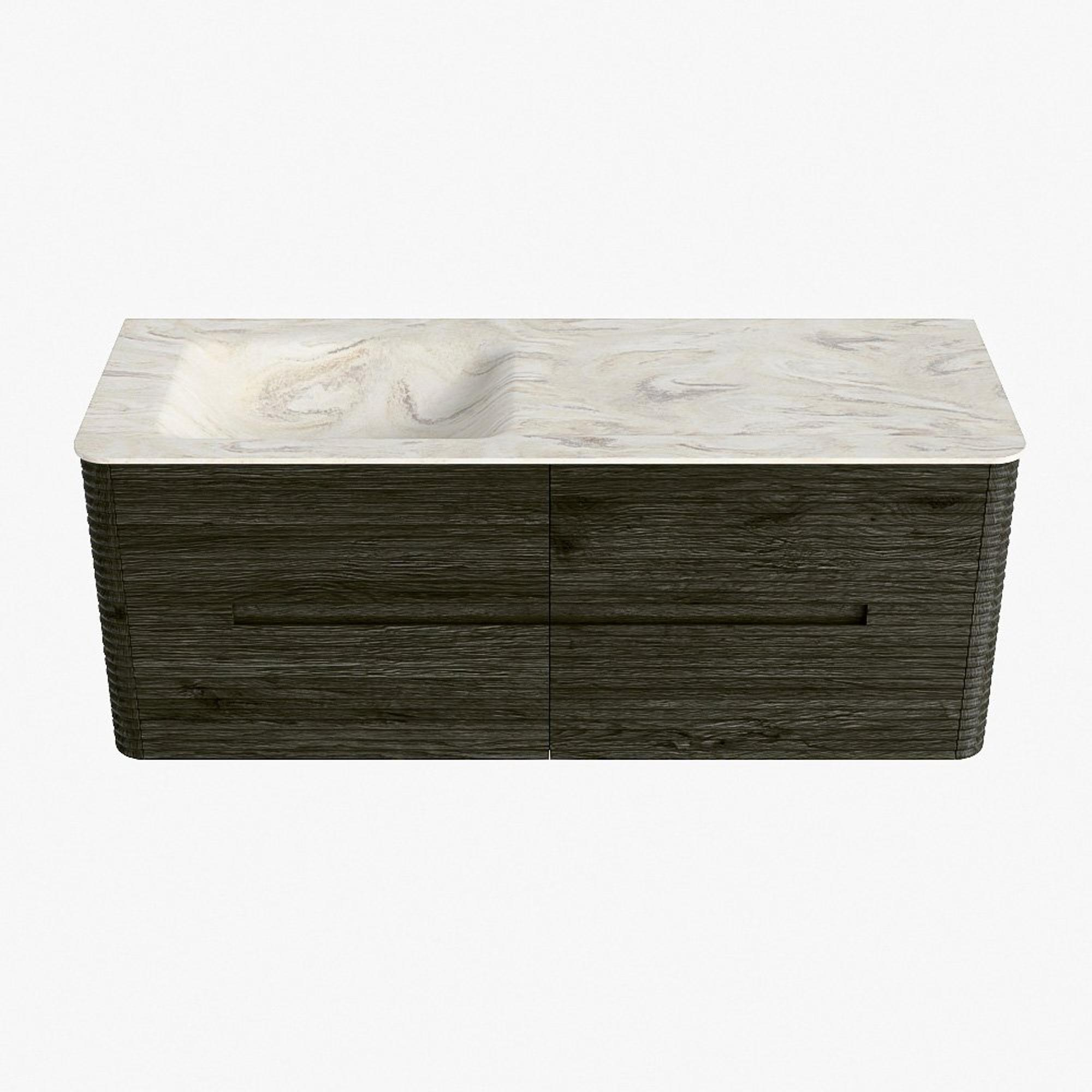 Mondiaz CIRO-DLUX Badkamermeubelset - 130x45x50cm - Solid surface wastafel Ostra - 1 wasbak Links - zonder kraangaten - 4 lades - Shadow