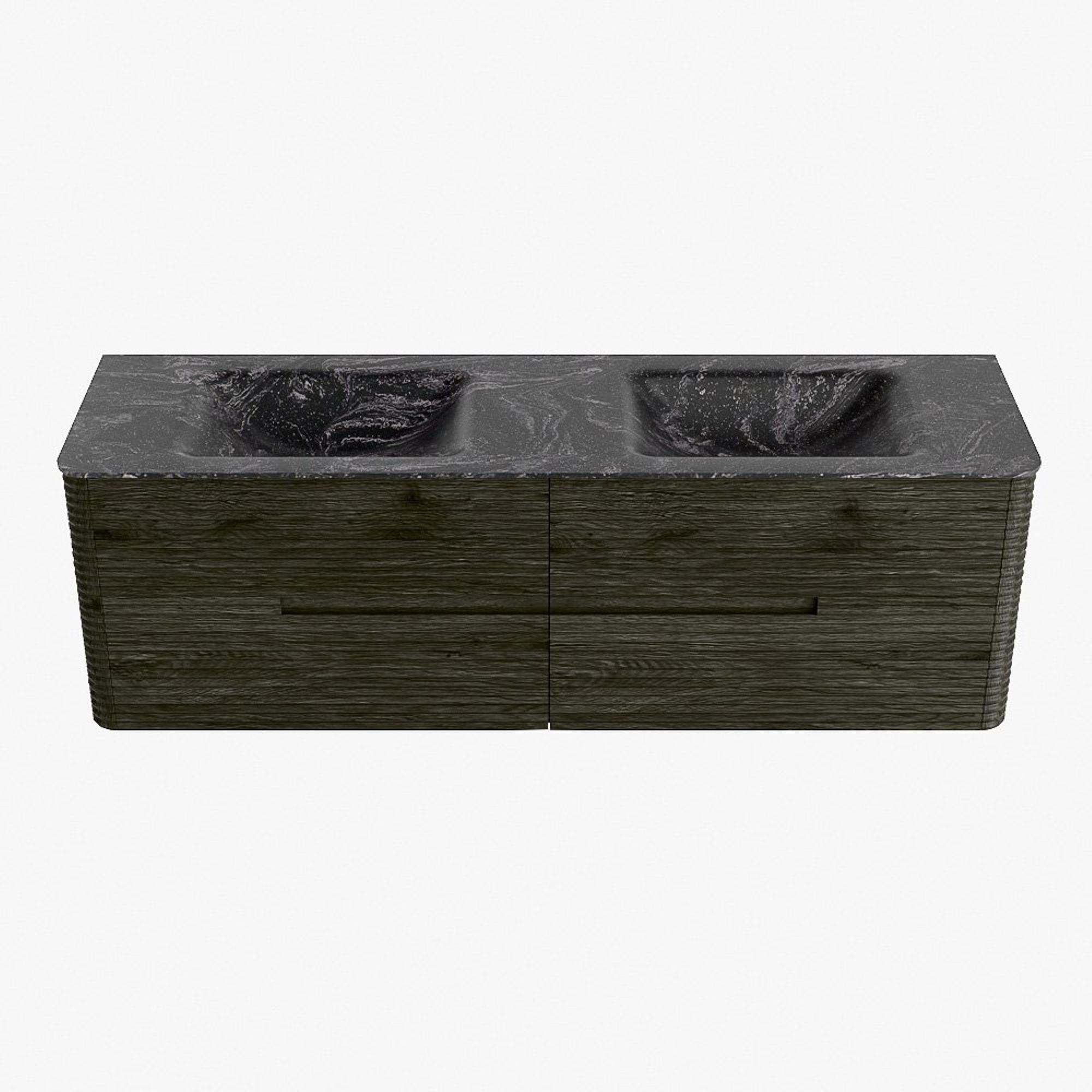Mondiaz CIRO-DLUX Badkamermeubelset - 160x45x50cm - Solid surface wastafel Lava - 2 wasbak Dubbel - zonder kraangaten - 4 lades - Shadow