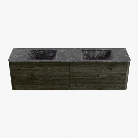 Mondiaz CIRO-DLUX Badkamermeubelset - 180x45x50cm - Solid surface wastafel Lava - 2 wasbak Dubbel - 2 kraangaten - 4 lades - Shadow