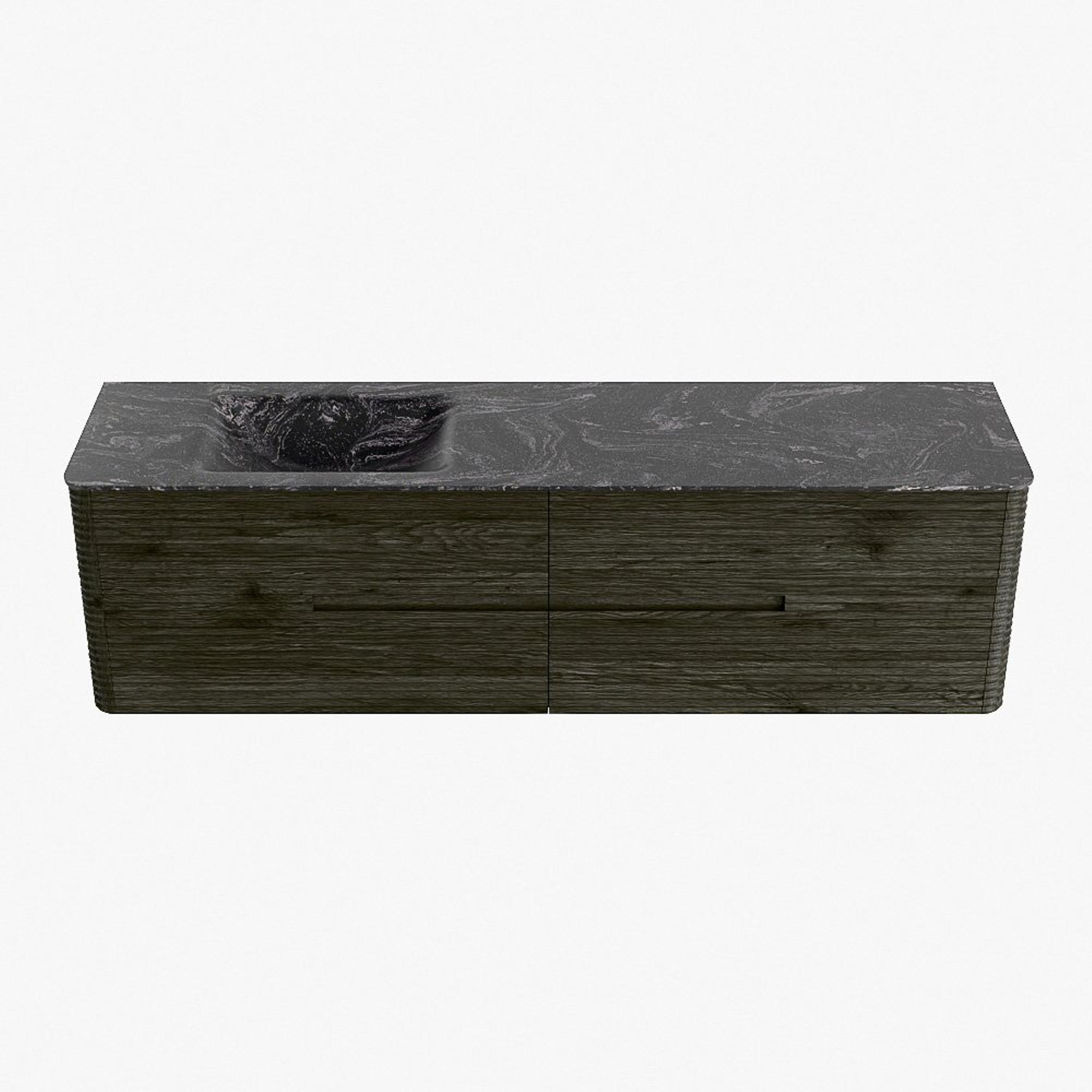 Mondiaz CIRO-DLUX Badkamermeubelset - 180x45x50cm - Solid surface wastafel Lava - 1 wasbak Links - zonder kraangaten - 4 lades - Shadow