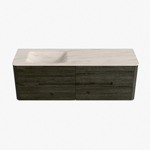 Mondiaz CIRO-DLUX Badkamermeubelset - 150x45x50cm - Solid surface wastafel Meli - 1 wasbak Links - zonder kraangaten - 4 lades - Shadow