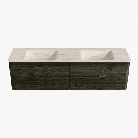 Mondiaz CIRO-DLUX Badkamermeubelset - 180x45x50cm - Solid surface wastafel Meli - 2 wasbak Dubbel - 2 kraangaten - 4 lades - Shadow