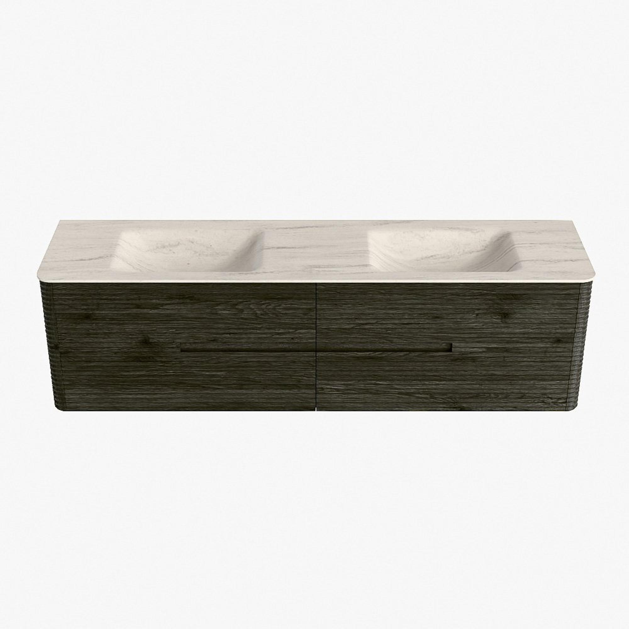 Mondiaz CIRO-DLUX Badkamermeubelset - 180x45x50cm - Solid surface wastafel Meli - 2 wasbak Dubbel - zonder kraangaten - 4 lades - Shadow