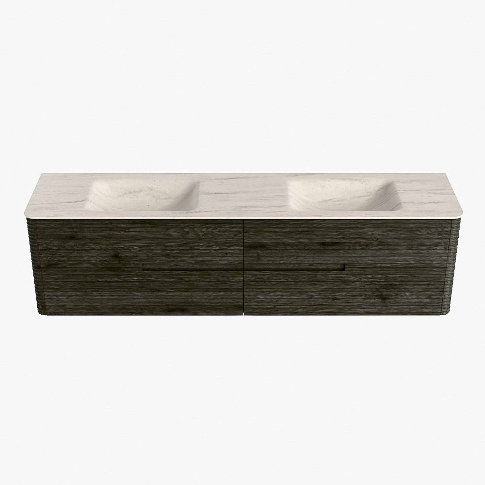 Mondiaz CIRO-DLUX Badkamermeubelset - 190x45x50cm - Solid surface wastafel Meli - 2 wasbak Dubbel - 2 kraangaten - 4 lades - Shadow